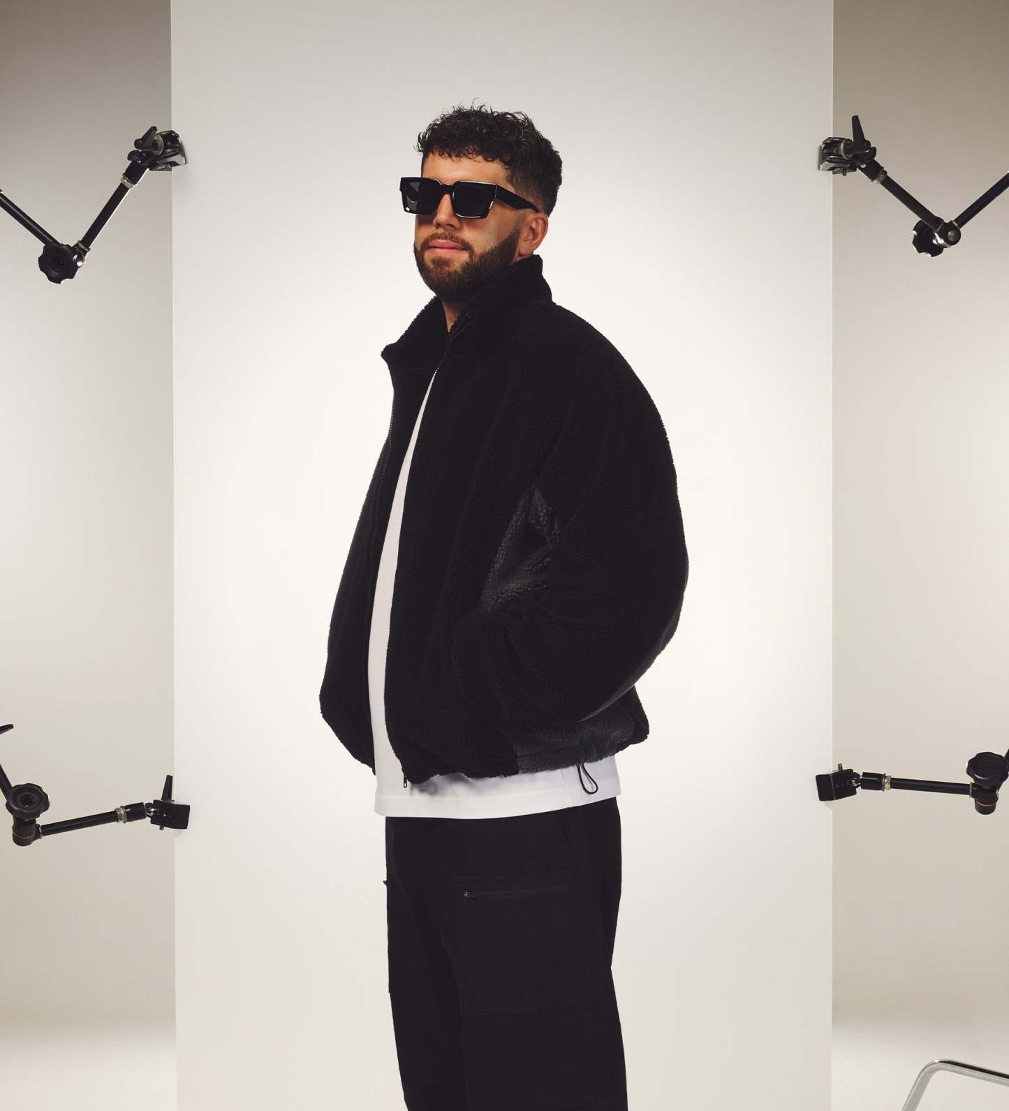 Studios ® Fleece [Black/Grey] - Sidemen Clothing: Studios ® Collection. SDMN_STUDIOS® woven tag. Custom XIX cord stoppers. Pongee polyester lining. 100% Polyester. Shop the collection now!